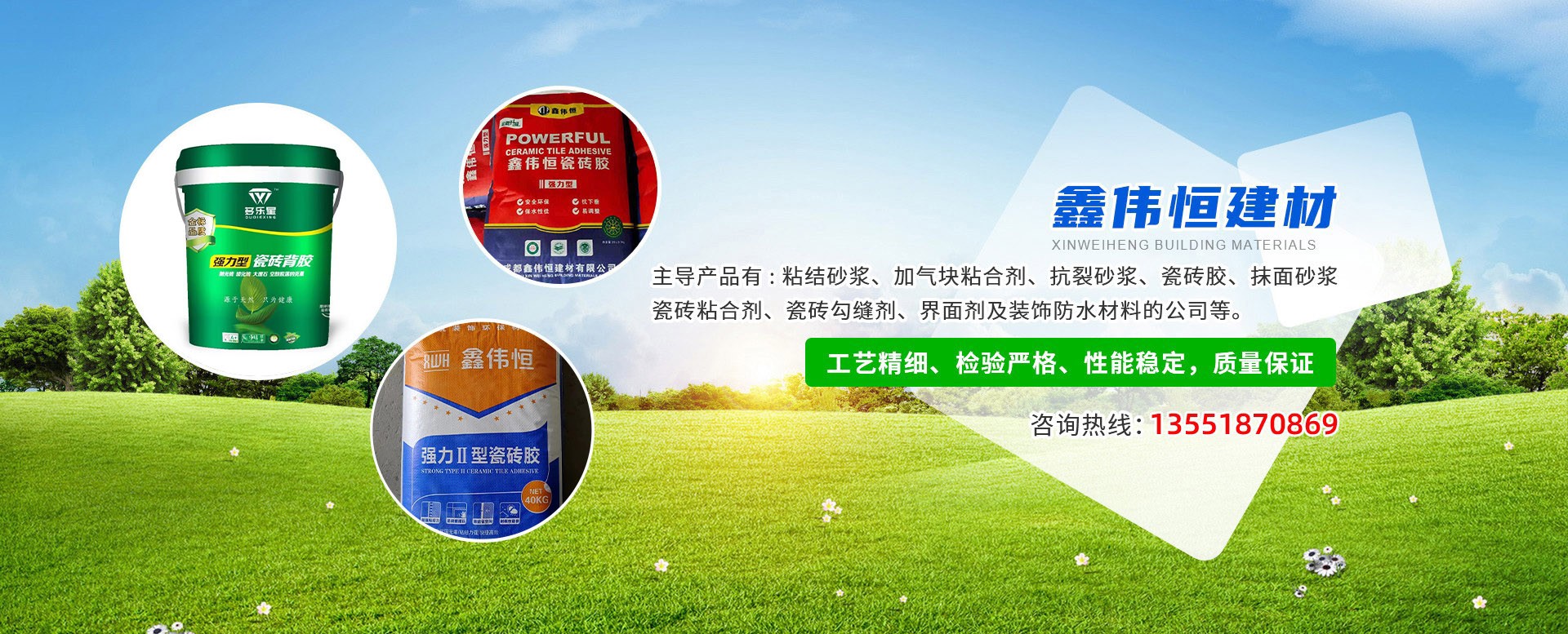 成都鑫偉恒建材有限公司,成立于2017年,廠房位于位于新津工業(yè)園區(qū)順江路115號。本公司集防水保溫材料研發(fā)、生產(chǎn)、銷售于一體的防水保溫材料公司。公司基于低碳、環(huán)保、綠色、節(jié)能的經(jīng)營理念,生產(chǎn)推廣高效、節(jié)能、環(huán)保的新型防水保溫材料等產(chǎn)品。本公司產(chǎn)品具有質(zhì)量優(yōu)良、良好技術(shù)、精湛工藝、成本低等優(yōu)勢。公司成立以來,一直視產(chǎn)品質(zhì)量為企業(yè)的生命,堅持“質(zhì)量為先,顧客至上”的服務(wù)宗旨,贏得了客戶的信賴,并建立了完善的售前售后服務(wù)體系,歡迎各界來我廠參觀指導(dǎo)。主導(dǎo)產(chǎn)品有 : 粘結(jié)砂漿、加氣塊粘合劑、抗裂砂漿、瓷磚膠、抹面砂漿、瓷磚粘合劑、瓷磚勾縫劑、界面劑及裝飾防水材料的公司等。